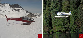 See remote, dramatic aerial landscapes. Some tours land on remote lakes or fjords. Read my floatplane sightseeing page for photos and descriptions.