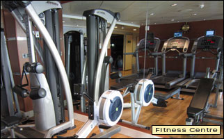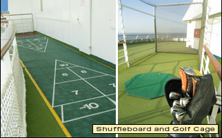 You'll find a variety of exercise equipment in The Fitness Centre, including treadmills, bicycles, and weight machines. Aerobic and yoga classes are regularly scheduled. Jog or walk the outdoor track. Play ping-pong and shuffleboard on the deck. Hit golf balls in an outdoor cage.