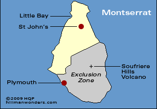 Hurricane Hugo severely damaged Montserrat in 1989 and volcanic eruptions in 1995 and 1997 devastated most of the lower two-thirds of this tiny island. Those eruptions (and the threat of new ones) make that area uninhabitable.
