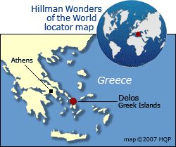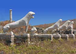 The most photographed artifacts are the squatting 7th century BC marble lions. Some tourists don't realize that they are copies. The originals are in the island's museum.
