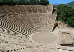 The Epidaurus cultural venue in Peloponnesus, Greece can accommodate 14,000 theatergoers.