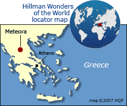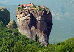 The isolated monasteries of Meteora in northern Greece are spectacularly perched on precipitous rock towers.