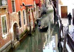 Venice is laced with narrow alleys that squeeze between buildings and sometimes briefly run along the city's narrow inner canals and cross over quaint mini-bridges.
