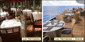 La Terrazza magically mutates into a sit-down, dimly-lit romantic Italian restaurant with a la carte menu and waiter service. It's very popular and reservations are required.