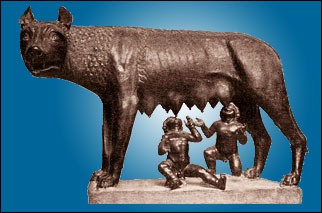 Legend tells us that Rome was named for Romulus, a mythical founder of the city. He and his baby twin were abandoned and then suckled by a she-wolf (see photo).